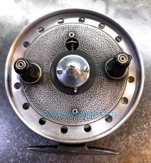 This old timer came to us with a broken center cap. As these are long gone, we needed to make one. I chose aluminum for this job as it matched the reel well. It's much stronger than the Bakelite (hard plastic) cap that was original, and should last forever now. If you're looking to get one of these caps made up for your reel, whether it's a J.W. Young, or any other reel, we need to have the reel here at the shop. This is because nothing was computer controlled in those days and because of that, many times holes are drilled slightly off center or machined slightly off because they were made by hand :)
